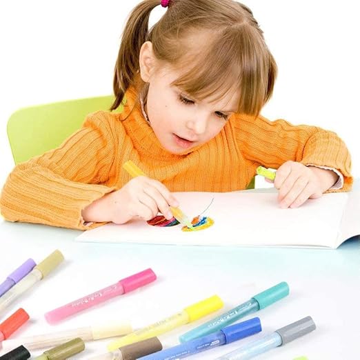 With Vibrant Acrylic Markers, the possibilities are limitless. Create custom designs on mugs, personalize journals, paint on fabric, craft unique home décor, or decorate metal and ceramic surfaces. These markers are perfect for scrapbooking, DIY projects, hand-lettering, coloring, and artistic masterpieces that truly pop with color and vibrancy.