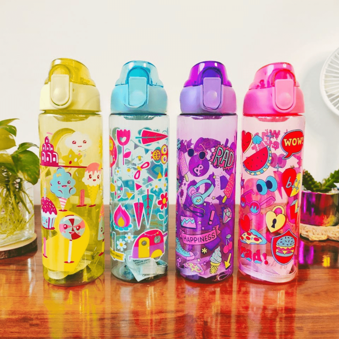 Kids Water Bottle – Colorful Sipper with Push Button Lock