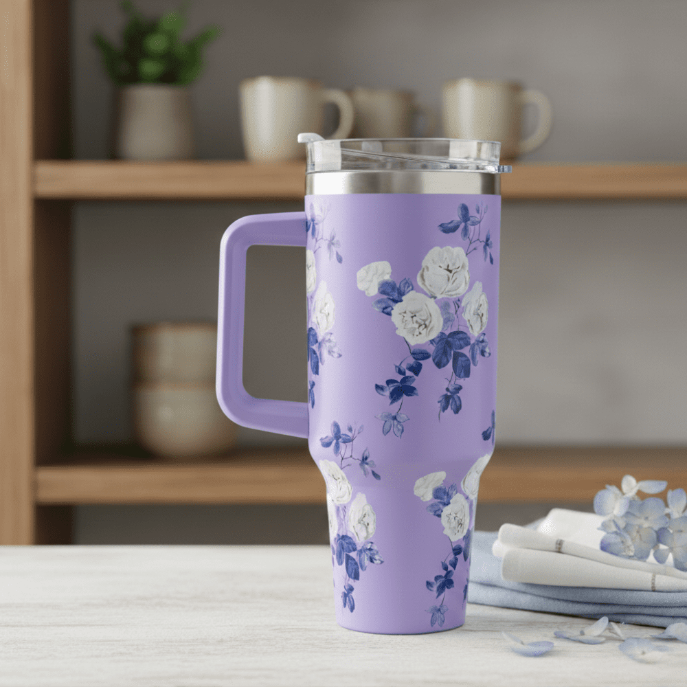 Upgrade your drinkware collection with this large capacity floral insulated travel mug – practical, aesthetic, and trendy.