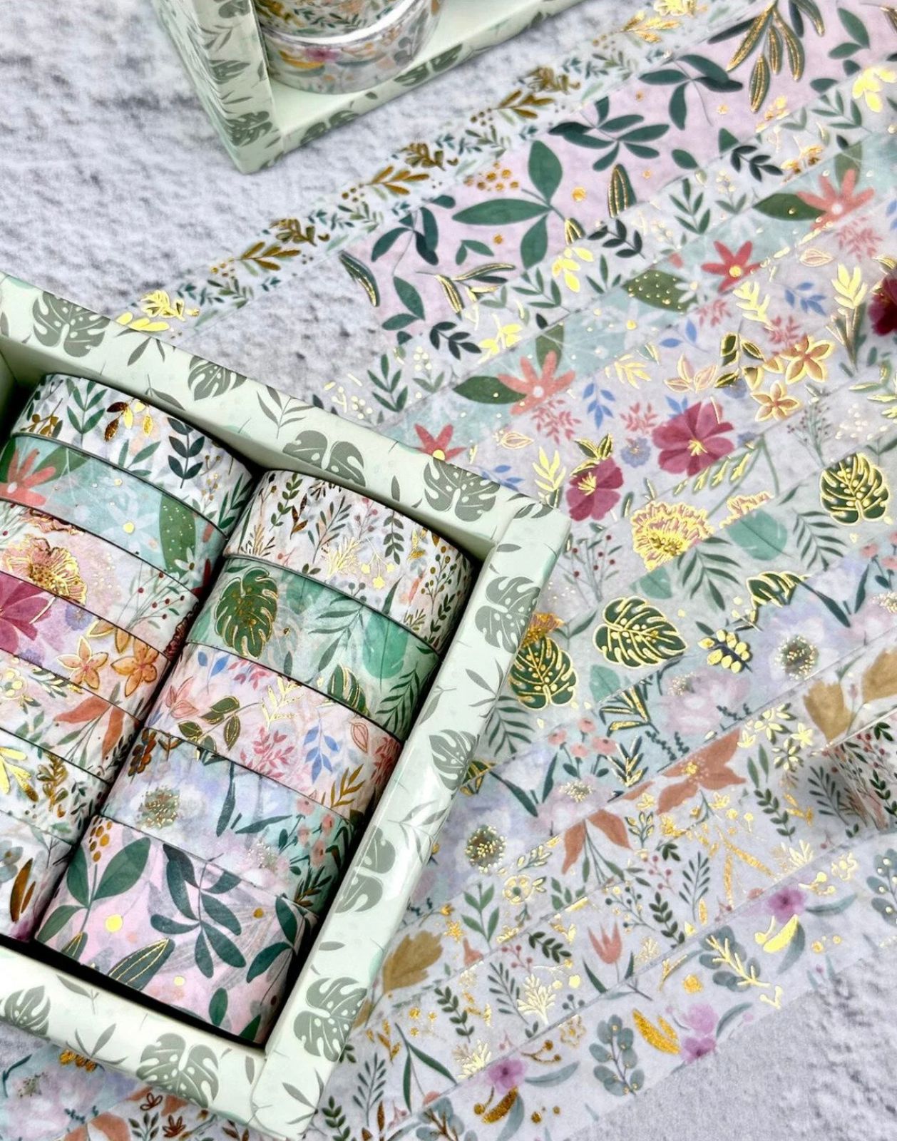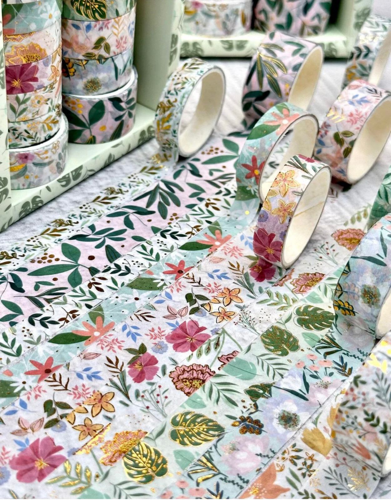 A delicate, floral washi tape collection that brings elegance and charm to every creative moment.