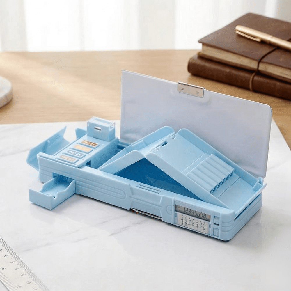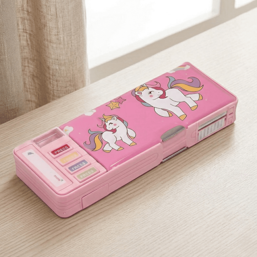 This magnetic closure pencil case for kids is ideal for those who prefer simple and quick access without passcode locks. The dual sided storage design helps keep stationery organized, while the added features make it highly functional for school, homework, and travel.