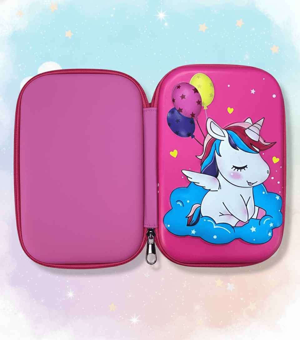 Make school time magical with this adorable Unicorn EVA Hard Case Pencil Box. Designed with a beautiful 3D unicorn print, vibrant pink color, and cute balloon detailing, this pencil case is perfect for girls who love unicorn themes.