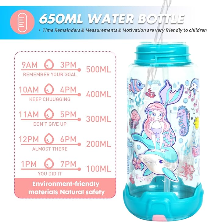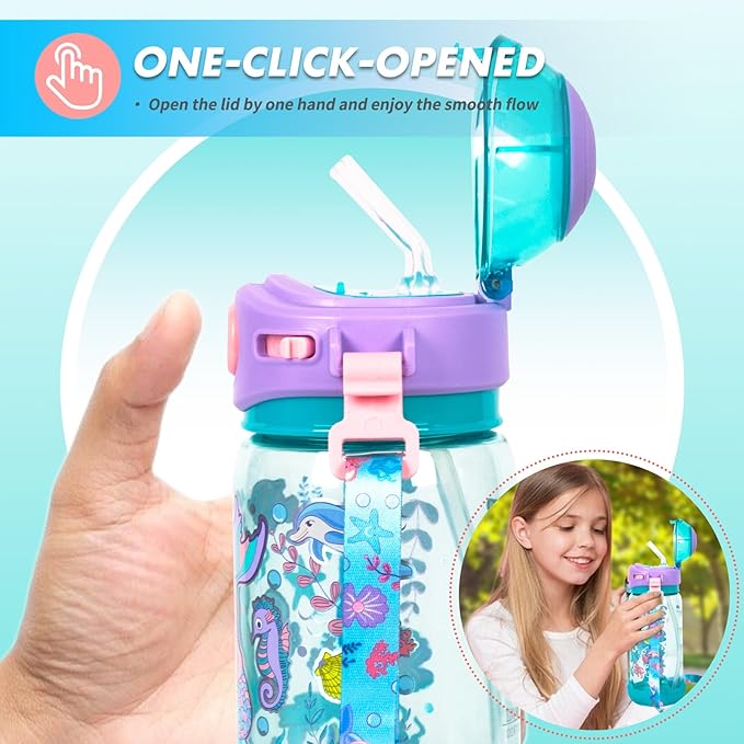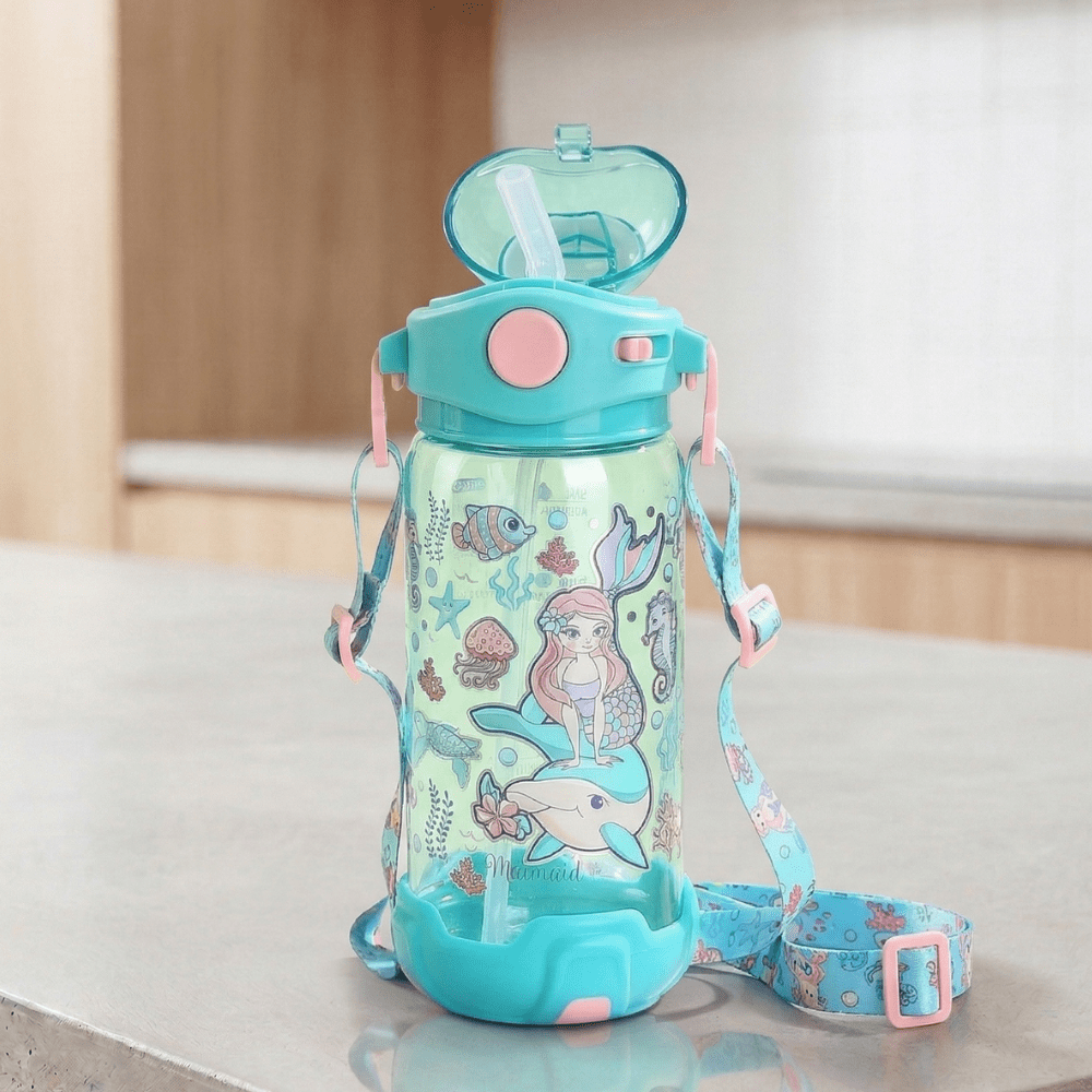 Kids Water Bottle – Mermaid Theme Sipper with Lock & Strap