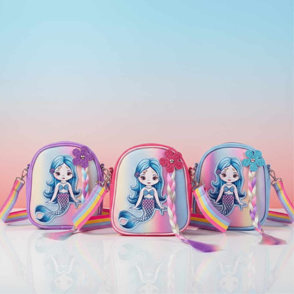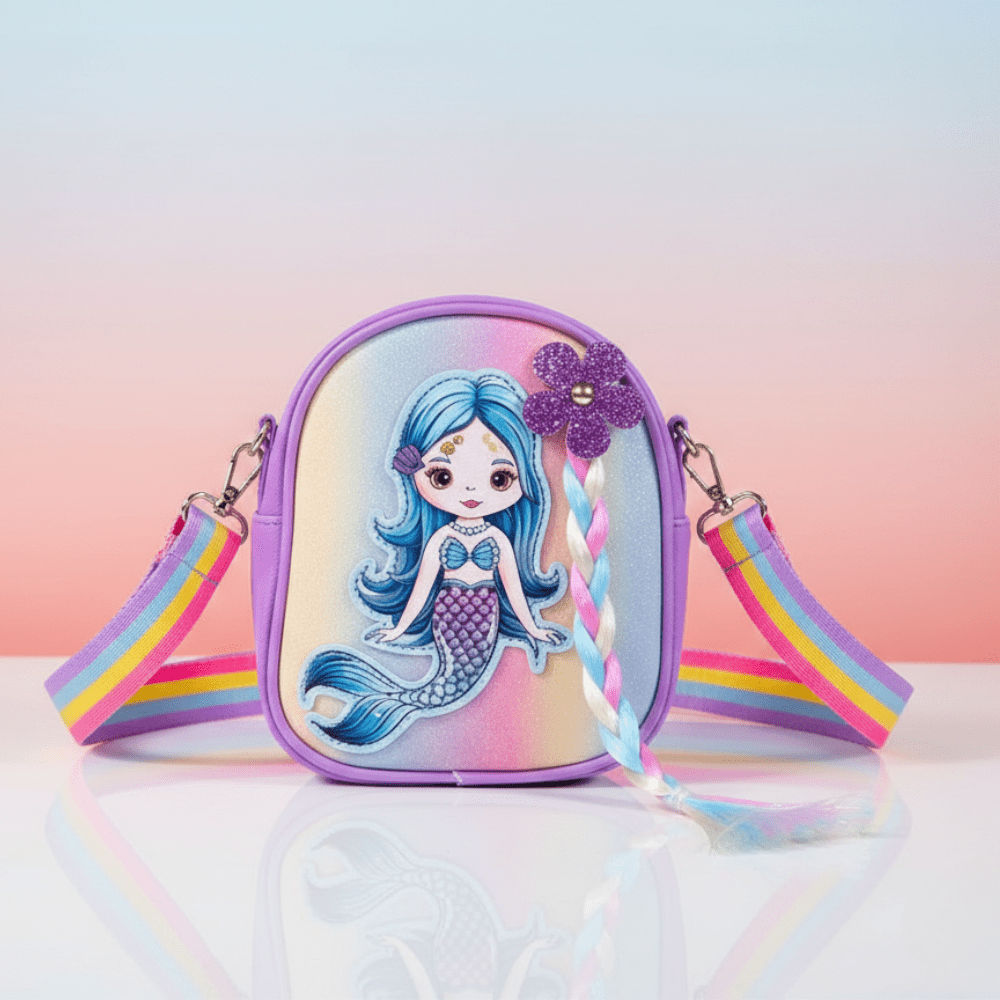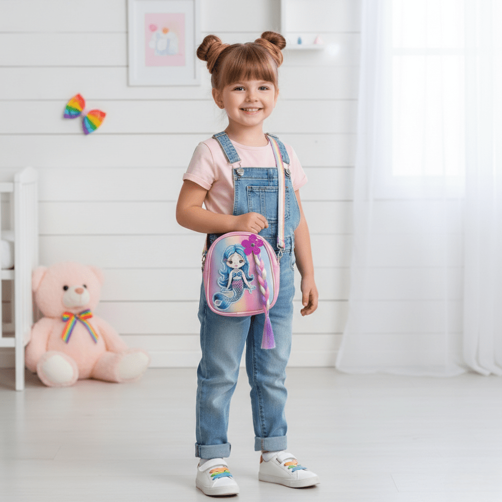 Make every outing magical with this adorable Mermaid Kids Sling Bag designed especially for little fashion lovers. Featuring a beautiful pastel gradient finish and cute cartoon mermaid print, this stylish mini crossbody bag is perfect for daily use, parties, school events, and birthday gifting.
