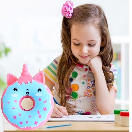 The donut erasers are carefully crafted from premium, non-toxic rubber that erases pencil marks smoothly and cleanly without tearing paper. Their soft texture provides a squishy, satisfying feel that makes them irresistible to play with while studying or working. Each eraser is shaped like a frosted donut, decorated with colorful icing swirls, sprinkles, and sometimes even unicorn or kitty faces for an extra layer of charm. The realistic yet playful design makes them stand out as both stationery tools and mini collectible pieces.