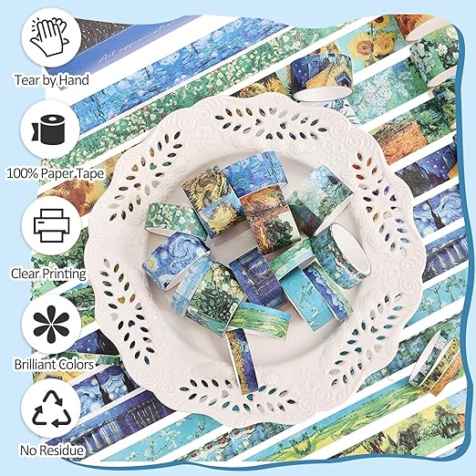 Washi Tape Vincent Van Gogh Series – Elevate your creativity with this premium art-themed decorative masking tape set. Perfect for scrapbooking, journaling, gift wrapping, DIY crafts, planner decoration, and stationery projects, this 18-roll washi tape box brings the timeless beauty of Vincent Van Gogh’s masterpieces into your hands.