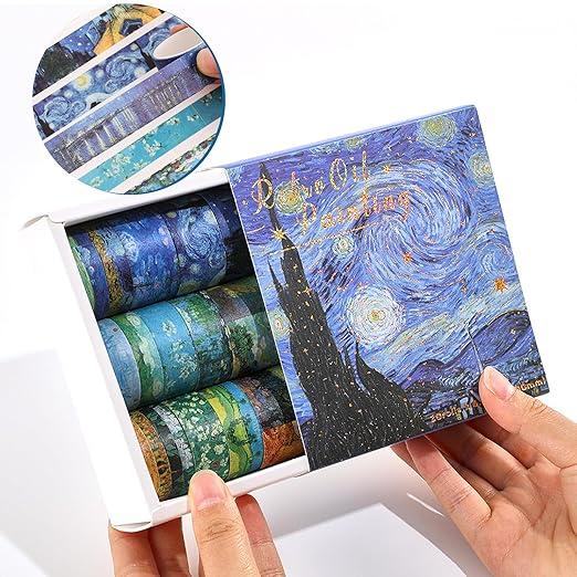 This Vincent Van Gogh washi tape collection is perfect for artists, students, scrapbook enthusiasts, stationery lovers, and craft hobbyists. Its wide range of tape widths allows you to layer, mix, and match designs effortlessly. Add a premium, art-inspired flair to your everyday creations or gift it to someone who appreciates fine art and creative crafting.