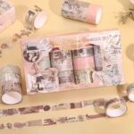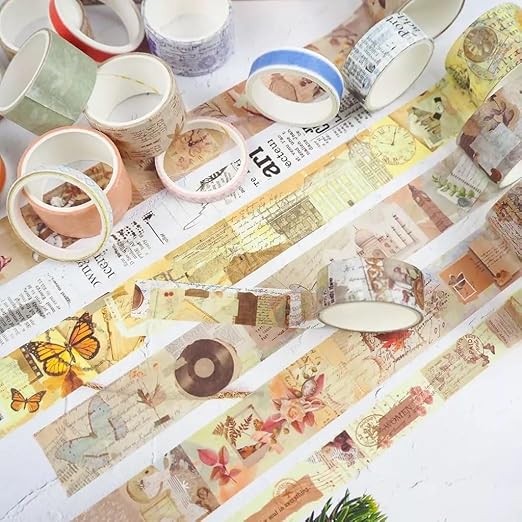 Perfect for scrapbooking, card making, bullet journaling, planner decoration, packaging, and creative DIY crafts, these tapes stick securely yet remove cleanly without leaving residue. Whether you’re decorating notebooks, sealing envelopes, or customizing photo albums, this vintage washi tape set ensures your creations look artistic and sophisticated.