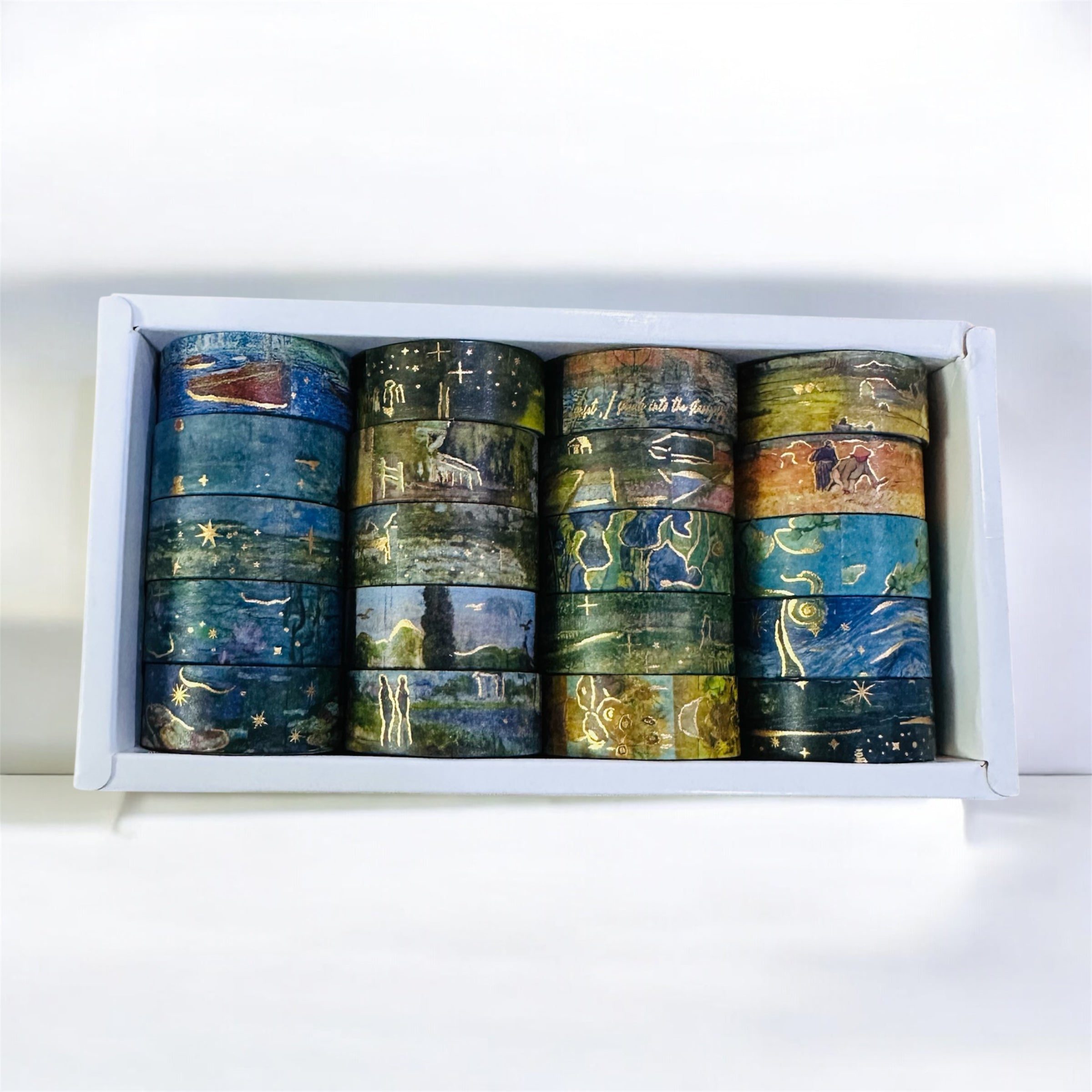 Washi Tape Oil Painting Blue Series – Elevate your creative projects with this premium oil painting-themed decorative masking tape set. Perfect for scrapbooking, journaling, planner decoration, DIY crafts, and gift wrapping, this 20-roll washi tape box combines vibrant artistic colors with premium design quality.