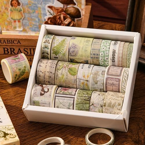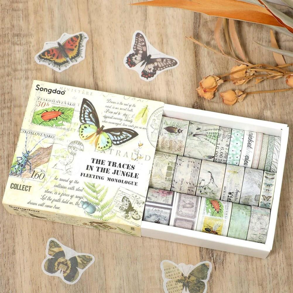 Washi Tape The Traces in the Jungle Series – Step into nature’s charm with this botanical-themed decorative masking tape set, inspired by lush jungles, ferns, butterflies, and vintage travel journals. Ideal for scrapbooking, journaling, planner decoration, DIY crafts, and gift wrapping, this 20-roll washi tape box brings a natural and artistic touch to every project.